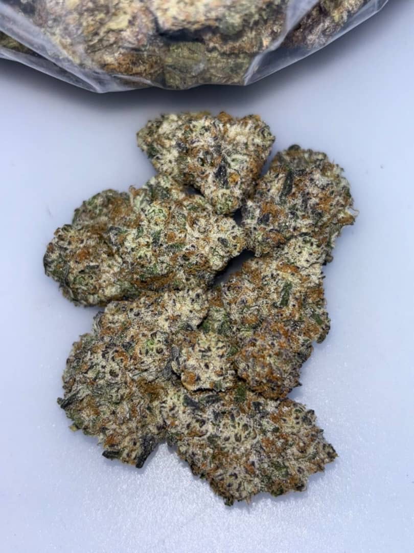 $700.00Original price was: $700.00.$550.00Current price is: $550.00.Add to cartEvery nug is sticky, dense, and fresh, breaking down soft and resinous with that greasy feel you want to see. The nose is loud the moment you open it sharp, gassy, and unmistakably green. No candy, no fruit, just pure fuel with a fresh herbal punch that fills the room instantly.