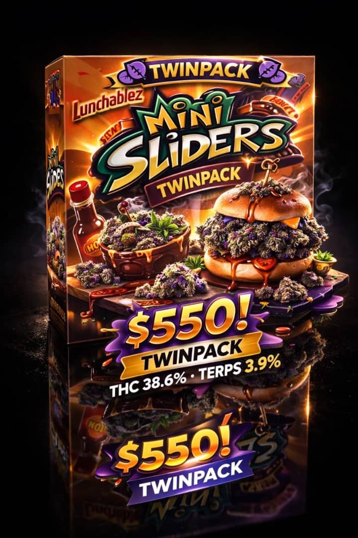 This isn’t your usual sweet talking strain. Mini Sliders comes dirty, savory, and loud, the kind of profile that punches instead of whispers. Crack the bag and it smells like straight fuel mixed with warm bread and a deep, funky backend that lets you know this one’s serious. The buds are compact and heavy, stacked with greasy resin that shines under the light  real structure, no fluff.
